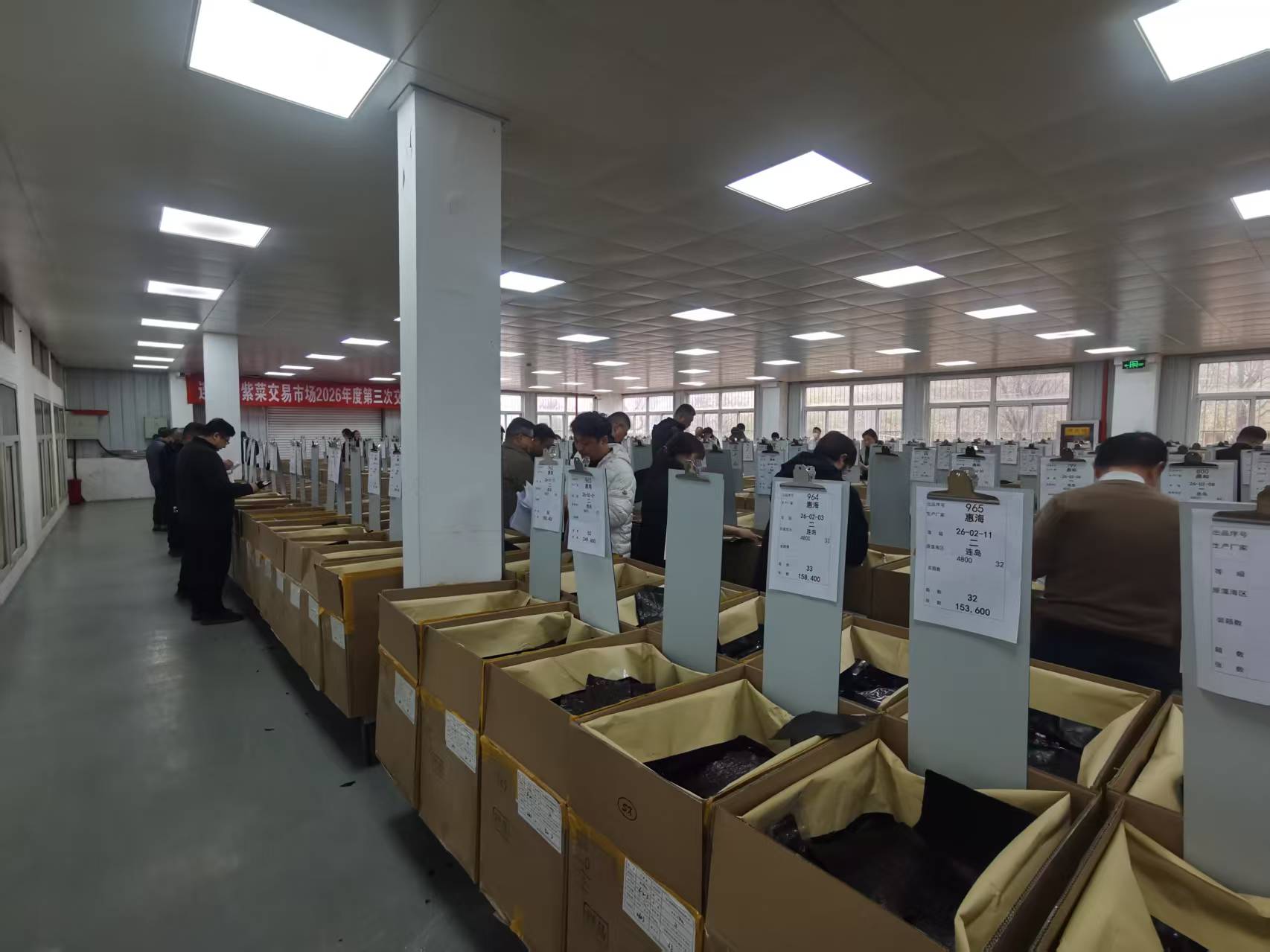 江苏省紫菜协会2026年第三期干紫菜交易会第一场于2026年3月4日至5日在连云港紫菜交易市场举办,共有85家卖方会员企业计116336标准箱(48861.3万张)干紫菜进场交易,42家买方会员进场竞标。其中32家买方会员共成交75185标准箱,成交率64.63%,成交金额14265.07万元,平均成交价45.17元/百张,最高成交价57.10元/百张,最低成交价25.20元/百张(C区菜)。小浅(上海)、喜之郎、启东金和、连云港禾力和朝仓(江苏)分列成交量1至5名。